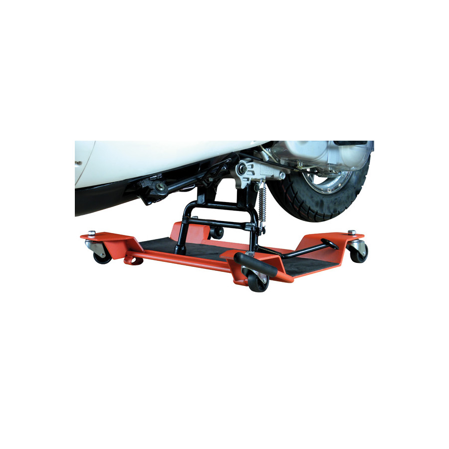 Este práctico "Motor Mover" de Motor X puede usarse como plataforma rodante para su motocicleta. Una capa protectora evita arañazos. Tiene una capacidad de carga máxima de hasta 300 kg. Las dimensiones de la plataforma se muestran a continuación: