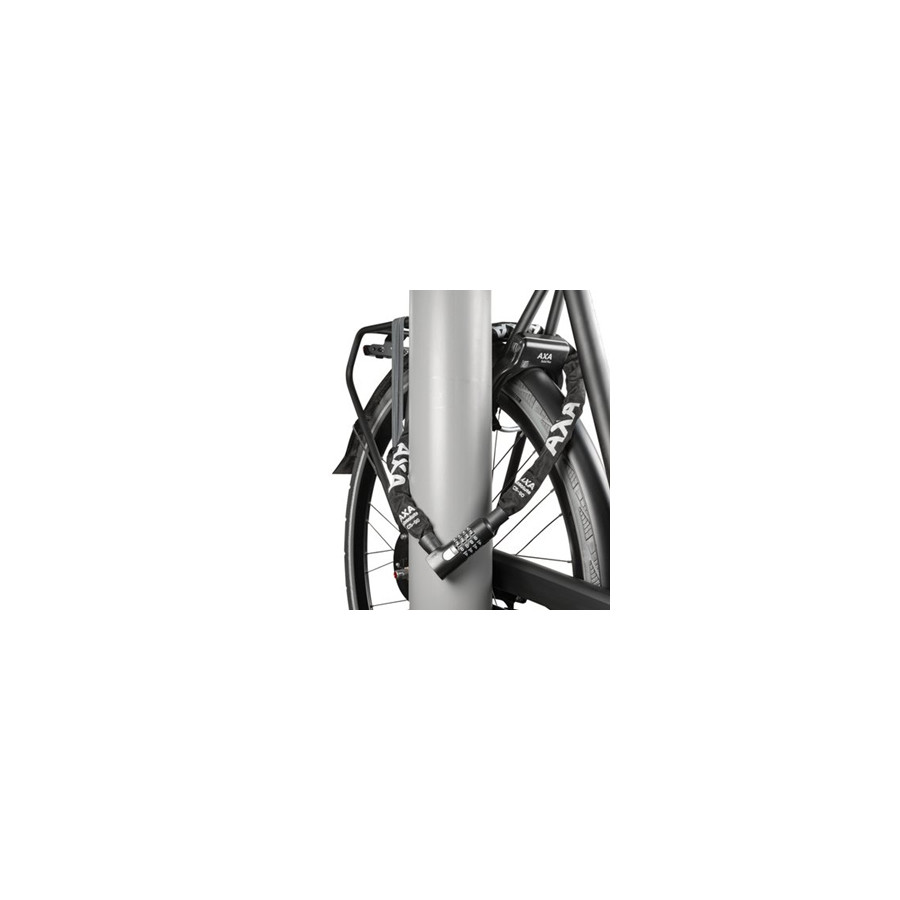El cilindro está protegido por una cubierta que evita que la humedad y la suciedad entren directamente en él. Esto aumenta la durabilidad del candado. La resistente cubierta de poliéster negro protege su bicicleta de daños. Si pierde la llave de su bicicleta, no se preocupe. Puede pedir una llave de repuesto a través del servicio de llaves en línea de AXA y se la entregará en pocos días.