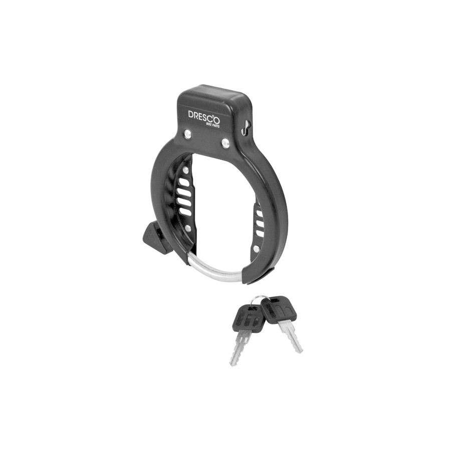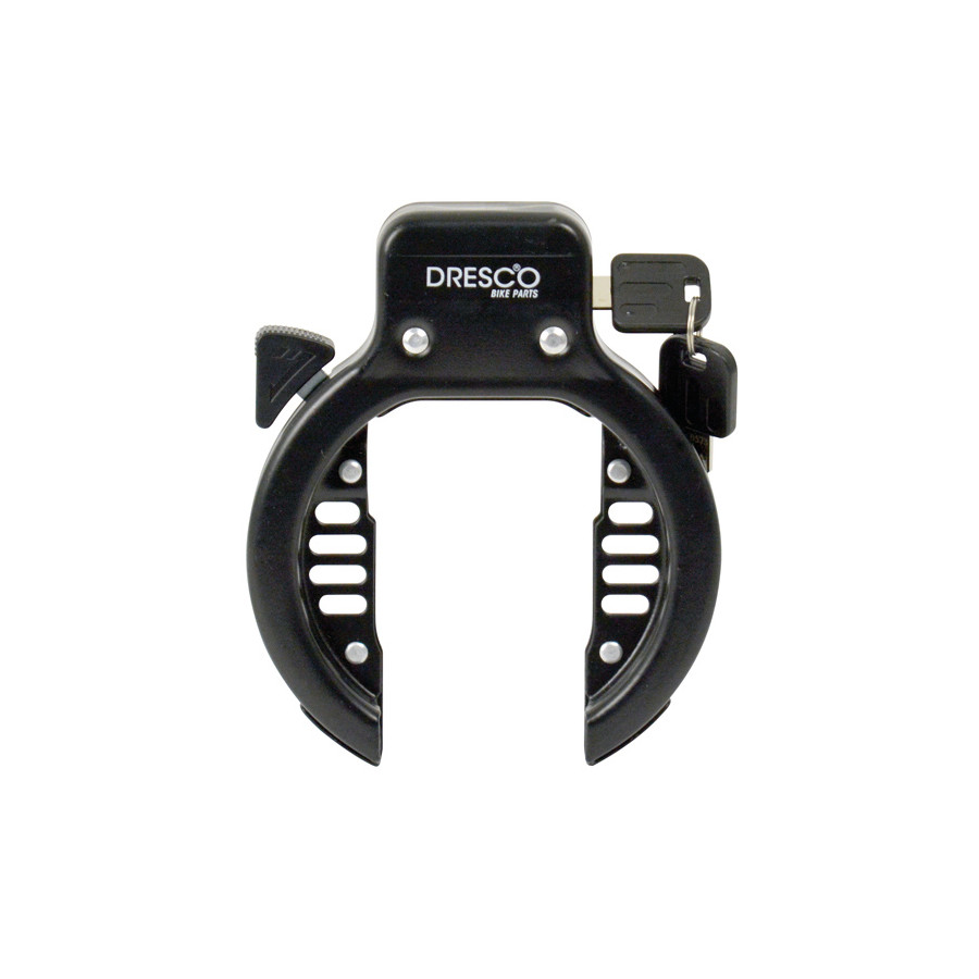 El candado de anilla Dresco es un candado de seguridad de alta calidad con una abertura extra ancha para neumáticos y guardabarros de gran tamaño. Su cuerpo de acero y su arco de acero endurecido ofrecen una mayor protección contra robos. Se monta al chasis con los tornillos M5 incluidos.