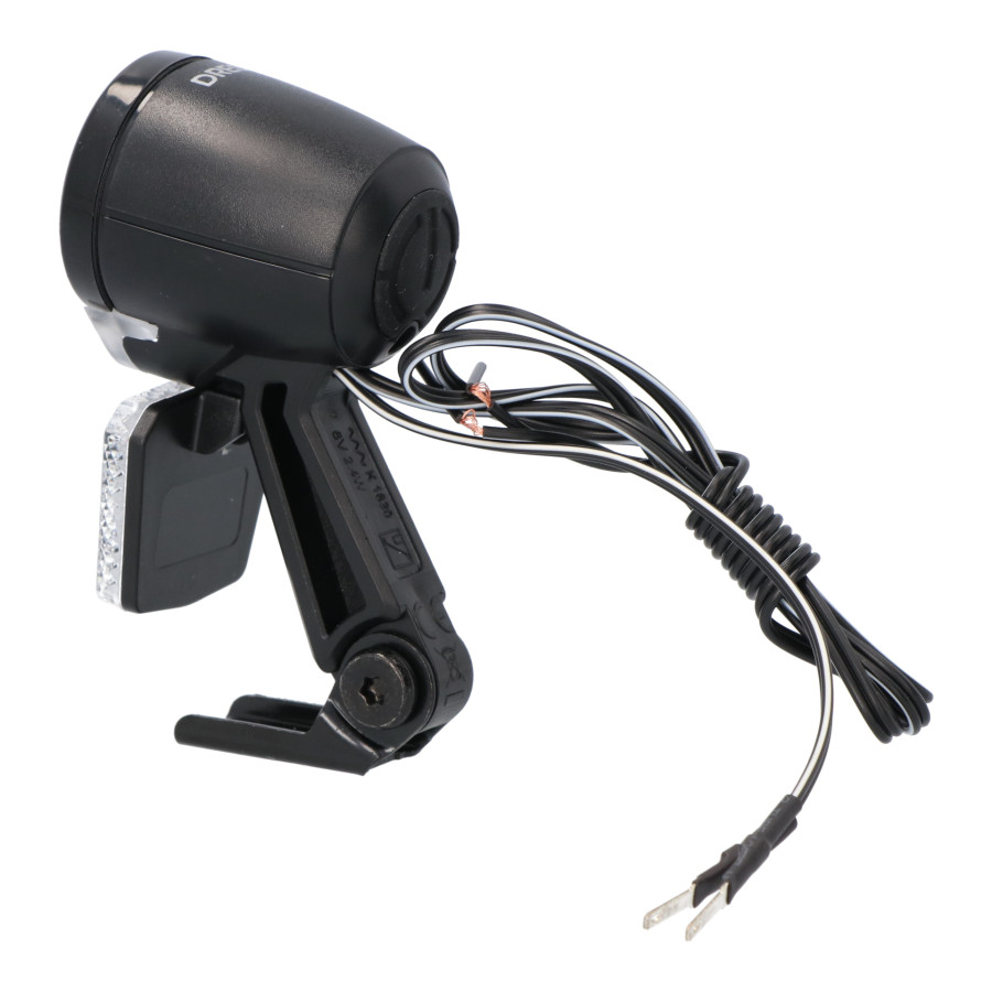 El faro Dresco Urban para bicicleta eléctrica es un faro pequeño y compacto alimentado por dinamo con un solo LED blanco superbrillante y una luz diurna automática con dos LED blancos. El faro Dresco Urban tiene una potencia luminosa de 40 lux/80 lúmenes y un reflector. Se puede conectar a cualquier fuente de alimentación de 6 voltios, lo que lo hace ideal para bicicletas eléctricas.