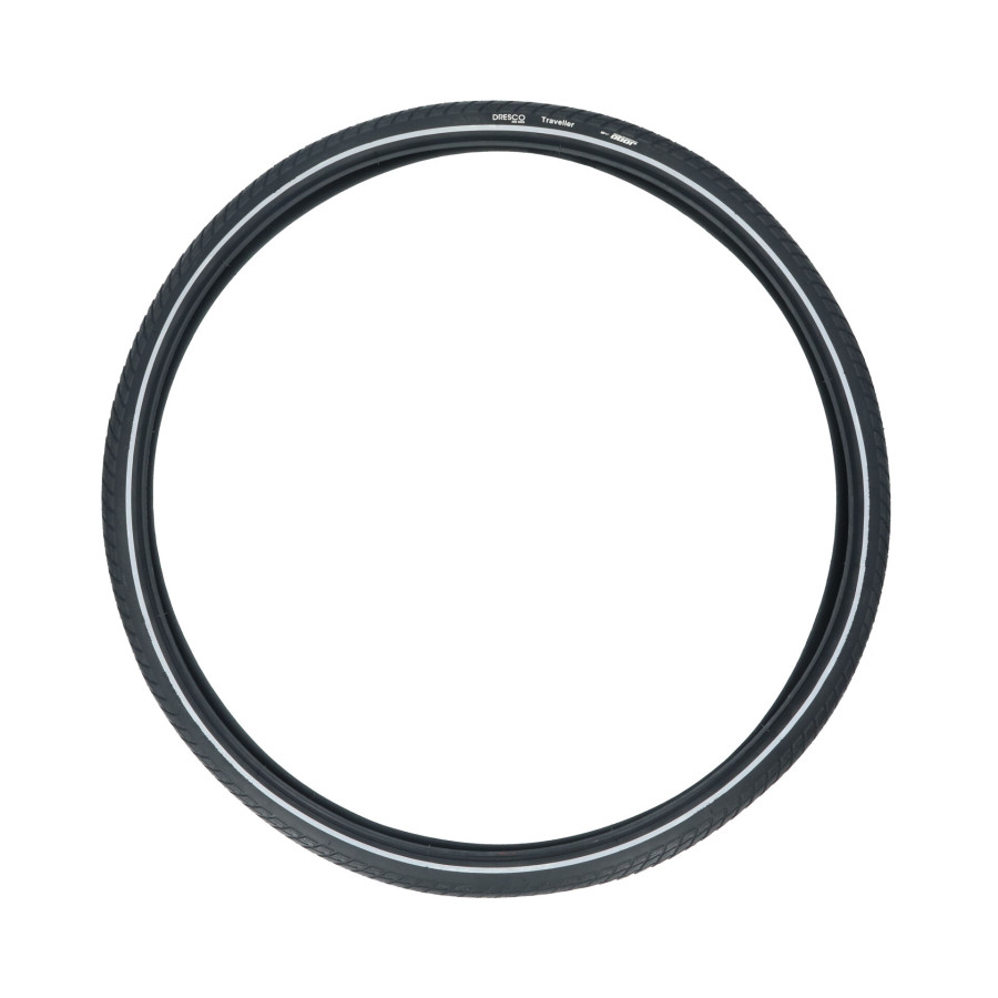 Esta llanta Dresco Traveller negra con elementos reflectantes de seguridad es una llanta versátil. Ideal para el uso diario, ofrece un agarre óptimo en cualquier condición climática. Es compatible con bicicletas de montaña y bicicletas de transporte con neumáticos de 28 x 1.60 y ETRTO 42-622. La llanta Dresco está fabricada con materiales de alta calidad y seleccionada por su durabilidad, resistencia a la rodadura y resistencia a los pinchazos.