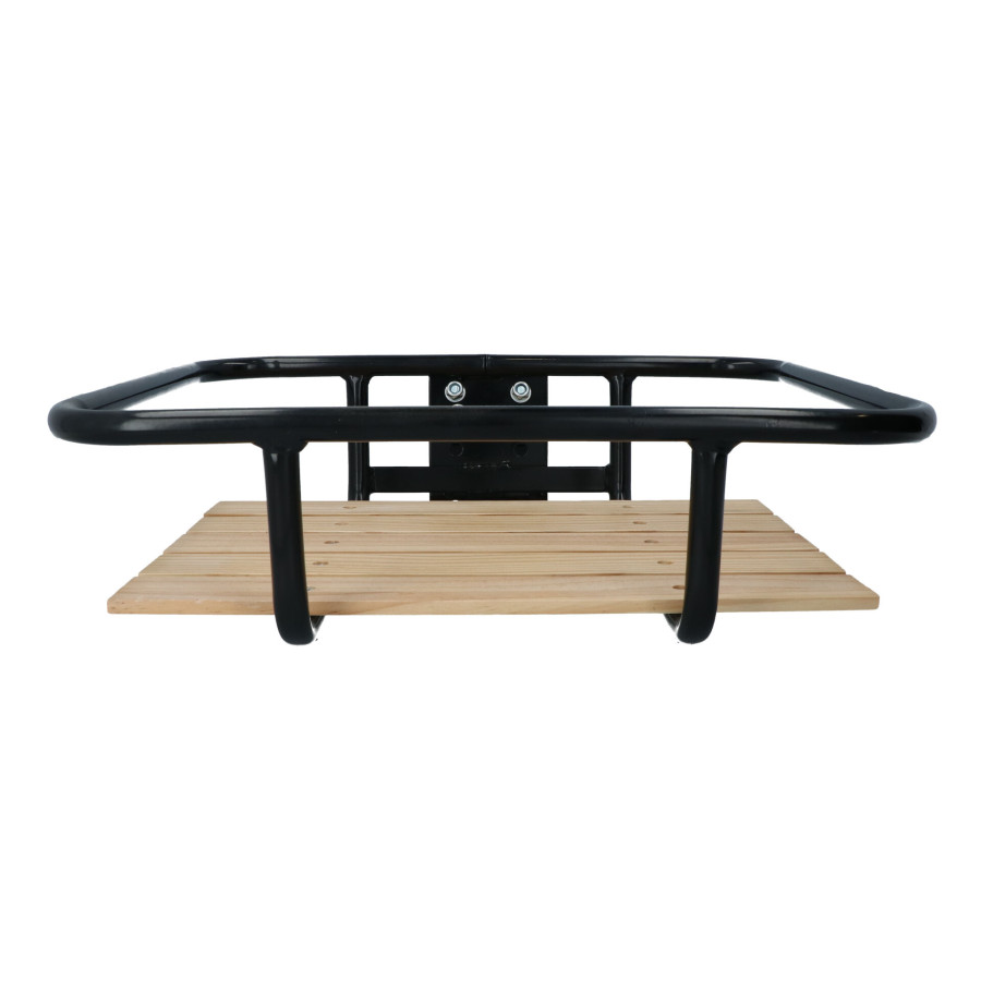 Transforma tu bicicleta en un moderno portabicicletas con este portabicicletas delantero Dresco con superficie de apoyo de madera. Ideal para llevar una mochila o una bolsa de deporte, es compatible con casi todas las bicicletas y se monta en el juego de dirección. Tiene una capacidad máxima de carga de 15 kg, una superficie de apoyo de 32 x 40 cm y un borde elevado de 12 cm de altura.