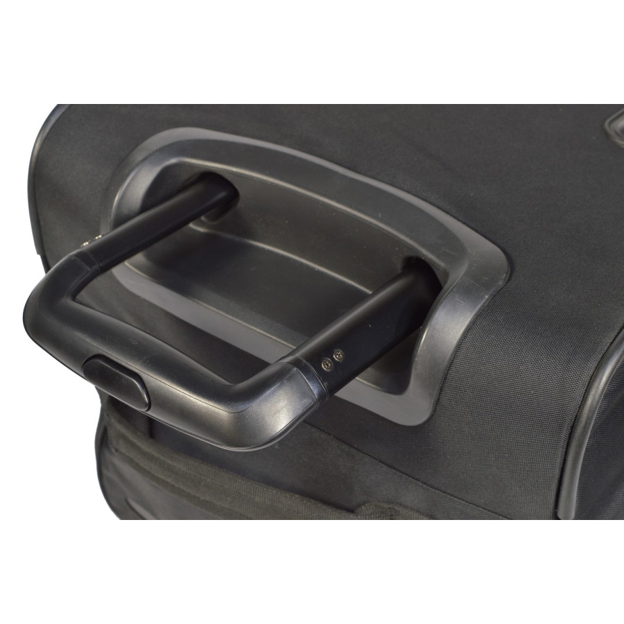 Empacar nunca ha sido tan fácil y rápido, porque ya sabes: si cabe en el set de bolsas de viaje Car-Bags, cabrá automáticamente en tu maletero. La mayoría de los sets constan de una capa inferior de prácticas bolsas con ruedas y asas telescópicas y una capa superior de bolsas de viaje a juego. Un set de bolsas de viaje Car-Bags se adapta con precisión a cada modelo de coche. El set no se compone de un surtido fijo de bolsas estándar; en cambio, las dimensiones de las bolsas con ruedas y las bolsas de viaje se ajustan con precisión al espacio del maletero. Esto garantiza un uso óptimo del ancho, largo y alto. Las bolsas de viaje Car-Bags suelen tener entre 30 y 35 cm de ancho, por lo que la ropa doblada cabe fácilmente. Las bolsas no son demasiado grandes, ya que las grandes son pesadas y difíciles de manejar. Además, el contenido de las grandes tiende a mezclarse con mayor facilidad.