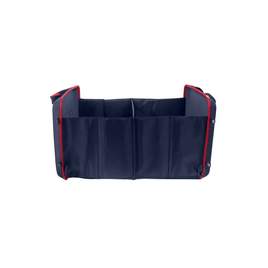 Este organizador azul con detalles en rojo y estampado de Red Bull Oracle es ideal para guardar los accesorios de tu coche de forma rápida y eficiente. Ya sea un triángulo de emergencia, cables de arranque, una botella de aceite o refrigerante, o un juego de bombillas de repuesto, este organizador ligero ofrece la solución perfecta.