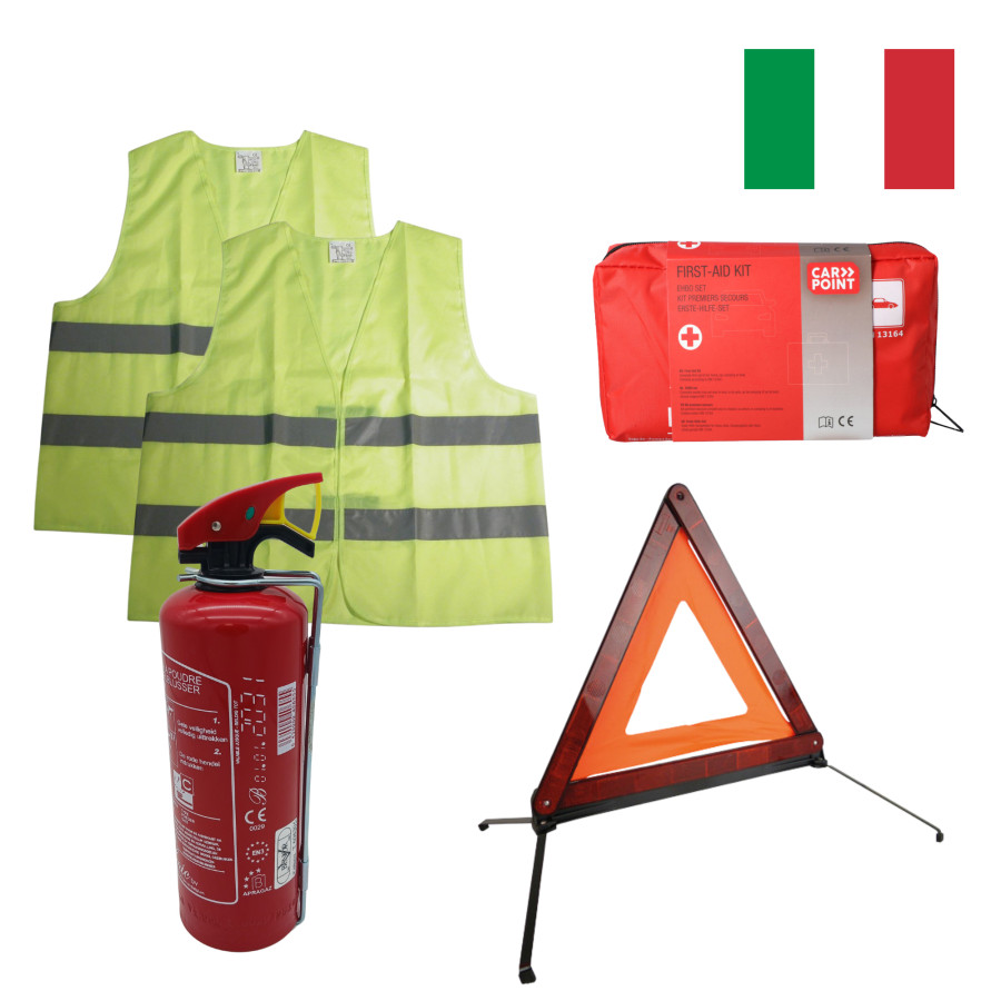 El paquete vacacional completo en Italia incluye los artículos legales y extras útiles para sus vacaciones en coche por Italia. Con este paquete, podrá viajar sin preocupaciones a la tierra de la pasta, a las colinas de la Toscana o a un emocionante recorrido por el Paso Stelvio. También está disponible un paquete vacacional estándar en Italia, que incluye solo los artículos legales.