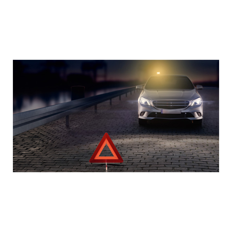En Alemania, en caso de avería o accidente, además del triángulo de advertencia obligatorio, la luz de emergencia se puede fijar magnéticamente al techo del vehículo y activarse para marcar la zona de peligro. A diferencia de un triángulo de advertencia, parpadea activamente para advertir a otros usuarios de la vía de una situación inusual en la carretera. Con 18 LED de alta potencia y larga duración, de hasta 140 lm y 2000 K, puede llamar la atención día y noche y alertar proactivamente a otros usuarios de la vía de una situación peligrosa, como un vehículo detenido.
