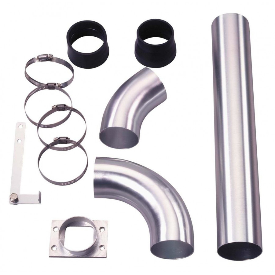Juego de tubos de admisión de aire universales para crear un sistema de filtro de aire abierto. El juego no incluye filtro de aire; se puede utilizar un filtro universal con conexión de 76 mm. El juego consta de tubos de aluminio anodizado y los herrajes de montaje correspondientes.