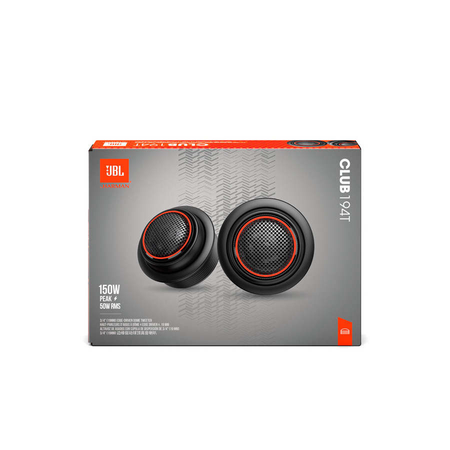 Descubra los tweeters de cúpula con accionamiento por borde de 3/4 pulgadas JBL Club 194T y mejore sus viajes en automóvil a un nivel superior de disfrute de audio.
