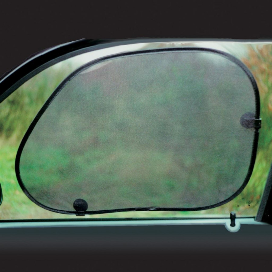 Estos parasoles plegables Carpoint protegen a los pasajeros del asiento trasero del sol. Son fáciles de instalar y desmontar gracias a sus ventosas. Vienen en pares y miden 38 x 50 cm.