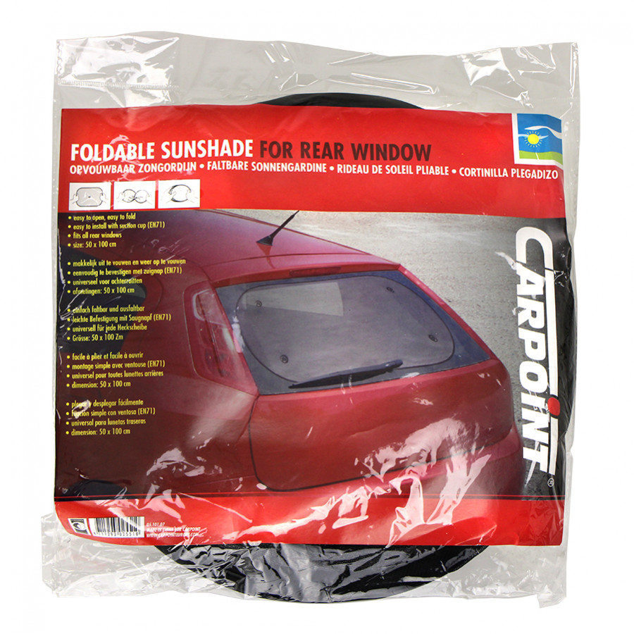Este parasol plegable Carpoint protege a los pasajeros del asiento trasero del sol. También es perfecto para proteger a tu mascota en el maletero. Los parasoles son fáciles de instalar y desmontar gracias a sus ventosas. Cada pieza mide 50 x 100 cm.