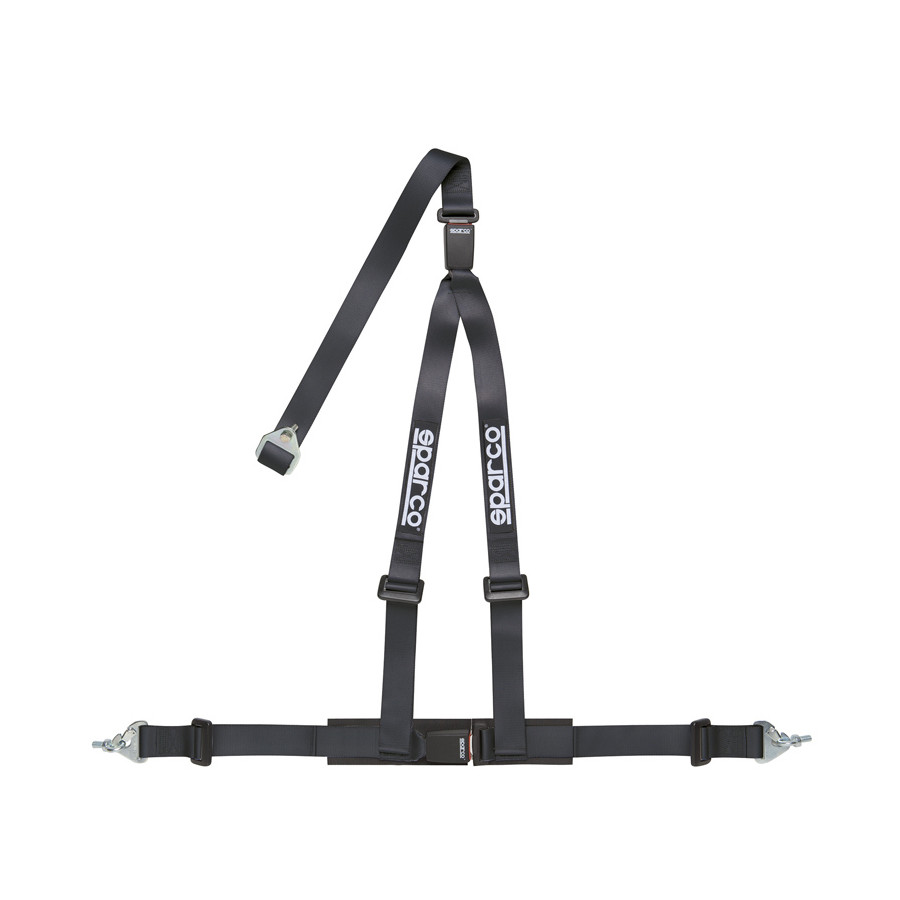Cinturón deportivo Sparco de 3 puntos - Negro - Incluye protector pélvico y fijación con tornillos (certificado E)