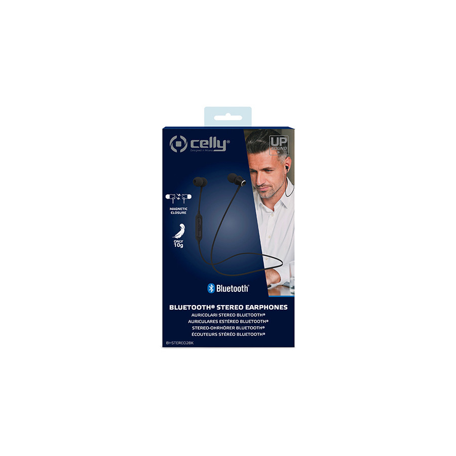 Los Celly BHSTEREO2 son los nuevos auriculares intraurales Bluetooth de aluminio metálico. Cuentan con cable antienredos, micrófono integrado y control remoto para subir o bajar el volumen, cambiar de canción y responder llamadas. Cada auricular cuenta con un imán integrado para mantenerlos unidos. La tecnología Bluetooth 5.0 garantiza la máxima calidad de sonido y duración de la batería. Conéctalos con cualquier dispositivo con Bluetooth para escuchar música o hacer llamadas y disfrutarás de hasta 3 horas de batería.