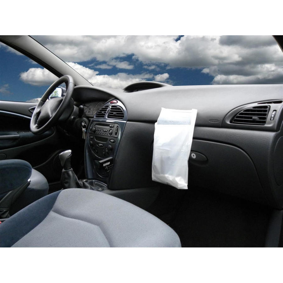 La bolsa de basura se fija fácilmente al salpicadero del coche, por ejemplo, con la tira adhesiva. También se puede usar en caravanas, autocaravanas, barcos o furgonetas. Tras su uso, se puede cerrar herméticamente con la tira adhesiva.