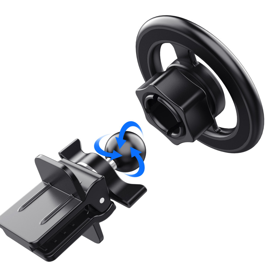 El cabezal gira 360° para que puedas colocar el soporte donde quieras. El sistema de montaje magnético está diseñado específicamente para los últimos modelos de iPhone, por lo que es completamente seguro y no interfiere con tu smartphone. La caja incluye una placa metálica adicional para mejorar el agarre del soporte si conduces de forma deportiva o quieres usarlo con otros modelos de smartphone.