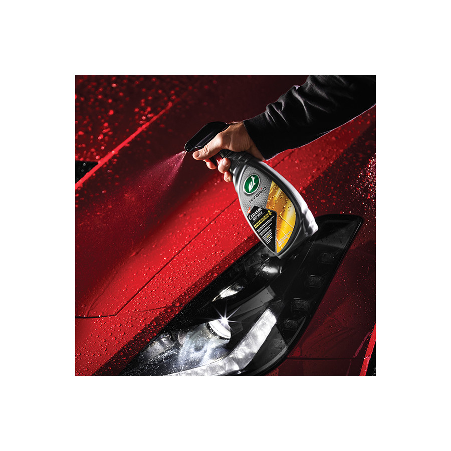 La cera húmeda cerámica Turtle Wax Hybrid Solutions ofrece un brillo y una protección increíbles en un solo paso. Simplemente rocíela sobre el auto mojado y déjela secar para un acabado profesional. Los polímeros superhidrofóbicos y de SiO₂ brindan meses de protección hidrófuga y resistente a los químicos.