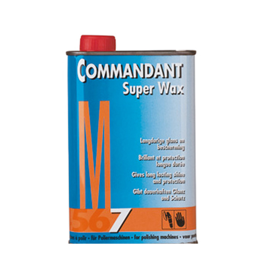 La cera Commandant M7 Super Wax proporciona un brillo intenso y una protección duradera. Protege contra cualquier condición climática. Es apta para pulidoras y para todo tipo de pintura o poliéster. Se puede aplicar a máquina o a mano. Se caracteriza por su larga duración y alto brillo. Es el tratamiento posterior ideal para Commandant (M)4, ya que sella el pretratamiento y repele la contaminación y las inclemencias del tiempo. La cera Commandant M7 Super Wax resiste numerosos lavados, garantizando la protección de su vehículo durante años. Referencia: Super Wax CM75 Commandant.