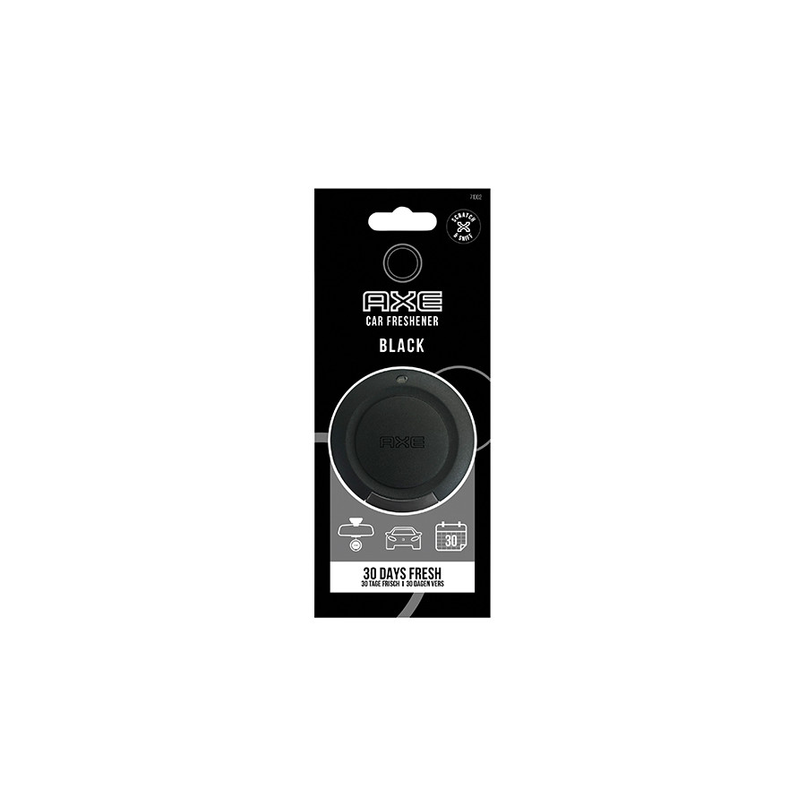 Refresca tu coche con la familiar y auténtica fragancia Axe Black. El ambientador Axe 3D difunde deliciosos aromas de bergamota, romero y cedro. Se cuelga fácilmente del retrovisor con su gancho y dura hasta 30 días.