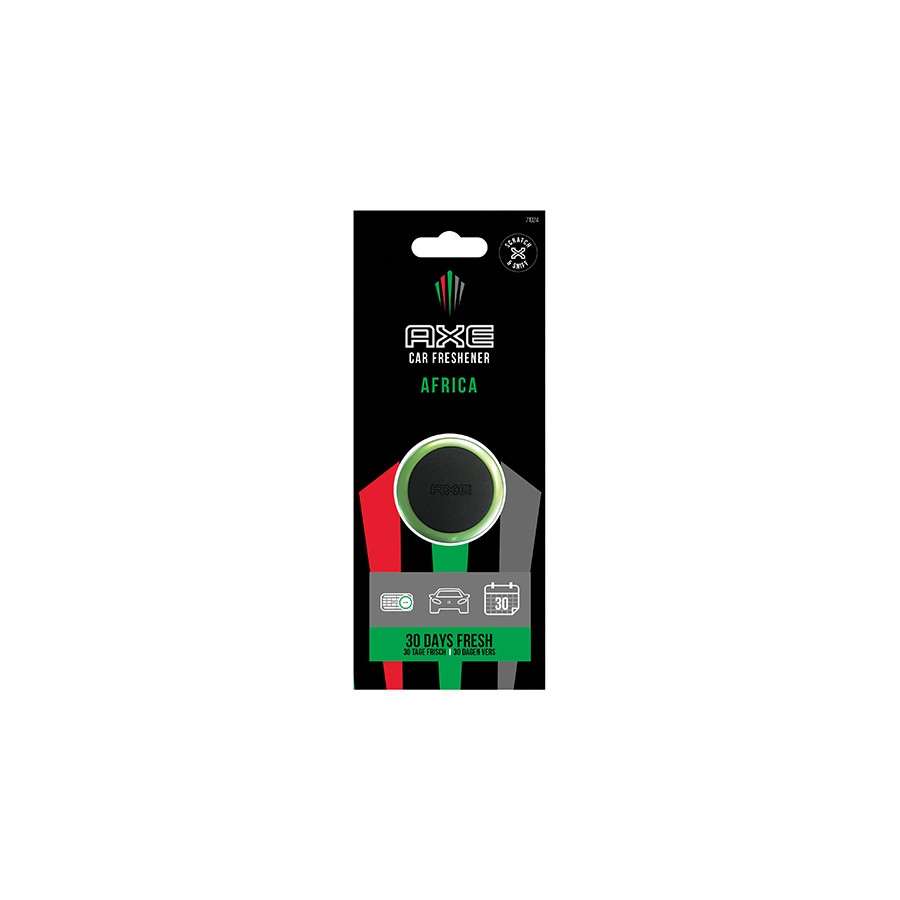 Refresca tu coche con la familiar y auténtica fragancia Axe Africa. El ambientador Axe Mini Vent difunde una exótica mezcla de cálidas especias y aromas africanos. Se fija a la rejilla de ventilación con el clip y dura hasta 30 dÃas.
