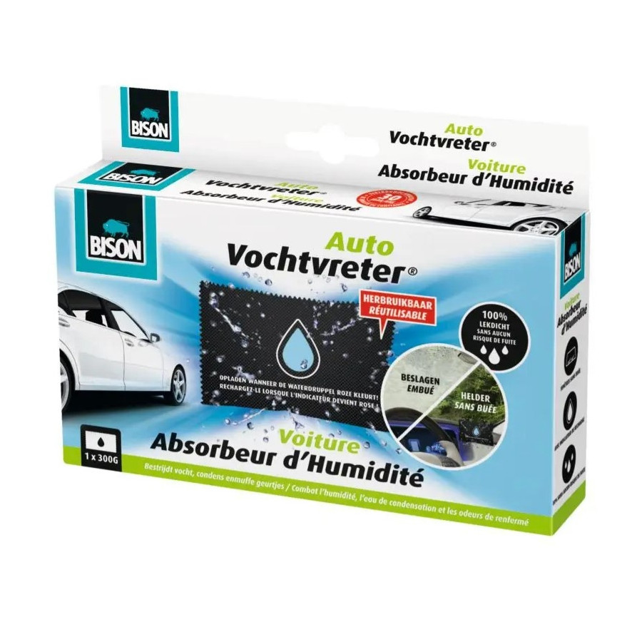 El Absorbedor de Humedad Bison® para Autos combate la humedad, la condensación y el olor a humedad en su auto absorbiendo el exceso de humedad. Esto lo convierte en la solución perfecta para evitar el empañamiento de las ventanas y contribuye a una visibilidad segura. El Absorbedor de Humedad® para Autos es limpio, fácil de usar y recargable para reutilizar.