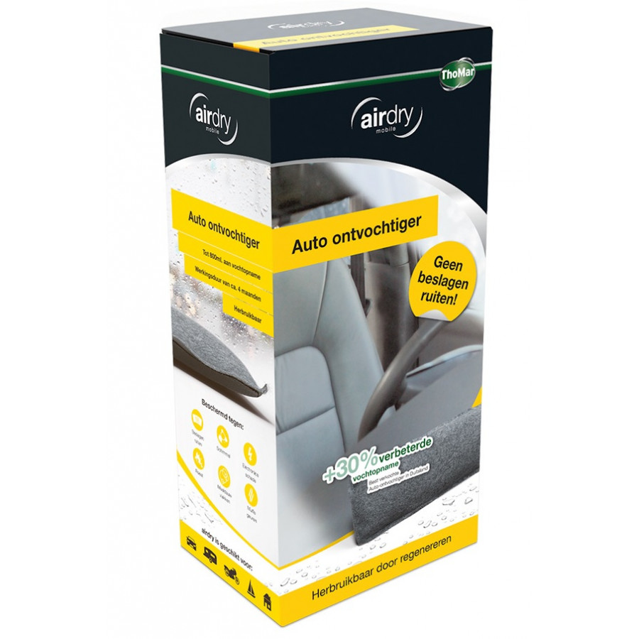 Como un imán, el deshumidificador para coches Thomar Airdry atrae la humedad del aire ambiente de su vehículo. Esta humedad se almacena en el granulado. El granulado Airdry está compuesto íntegramente de ingredientes naturales como gránulos de arcilla, sal y un aglutinante. Airdry es inodoro.