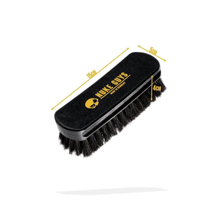 El cepillo de crin de Nuke Guys es versátil. Es ideal para limpiar capotas descapotables, asientos tapizados, alfombras, tapetes, asientos o tapizados de Alcántara y otras telas delicadas.