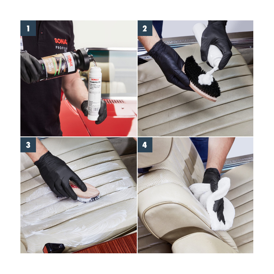 Limpiador extrafuerte para cueros de alta calidad. Elimina la suciedad incrustada sin dañar ni resecar el cuero. Después de su uso, trate el cuero con SONAX Leather Care. Sin silicona.