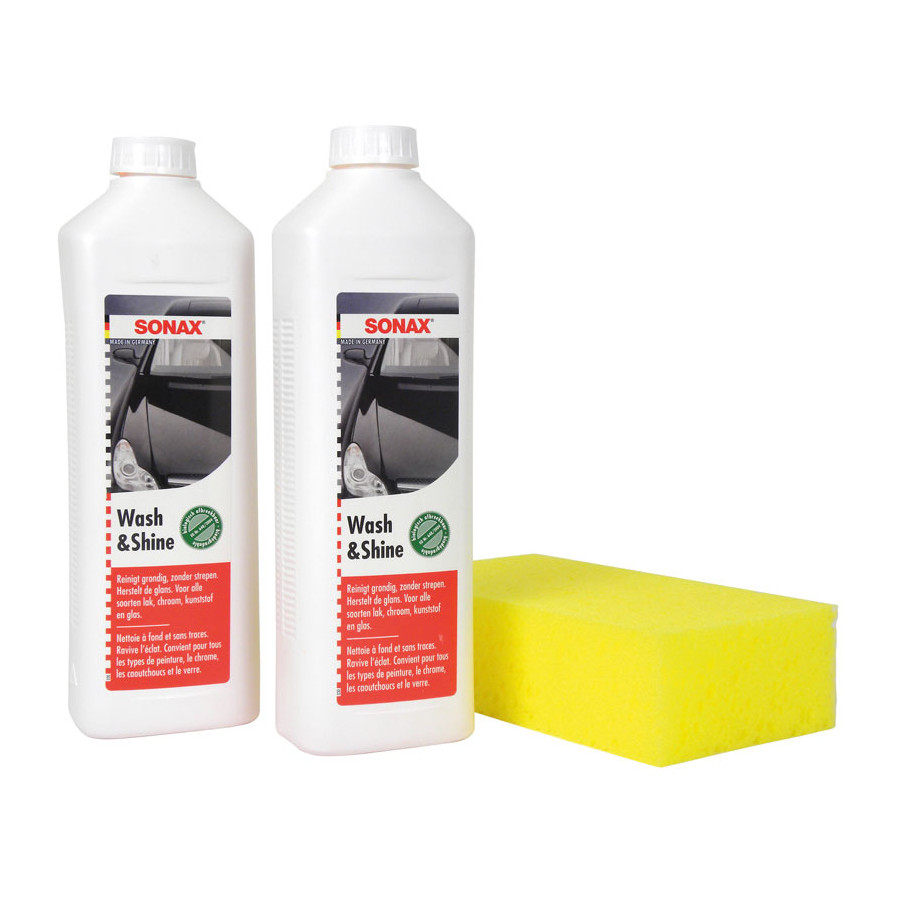 Champú para coche con fórmula concentrada de Sonax. Actúa rápida y eficazmente contra la suciedad. Sin fosfatos. Incluye 2 botellas y una esponja.