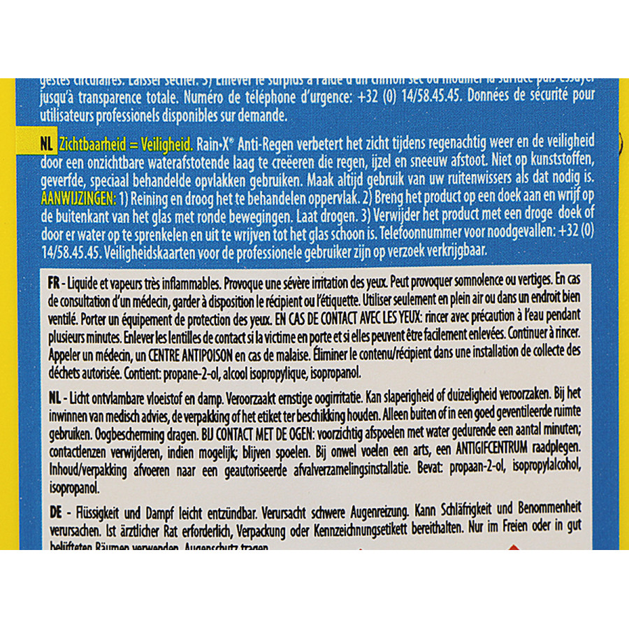 Pas de détails. C'est du Rain-X, exactement ce à quoi on s'attend.
