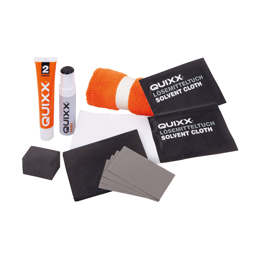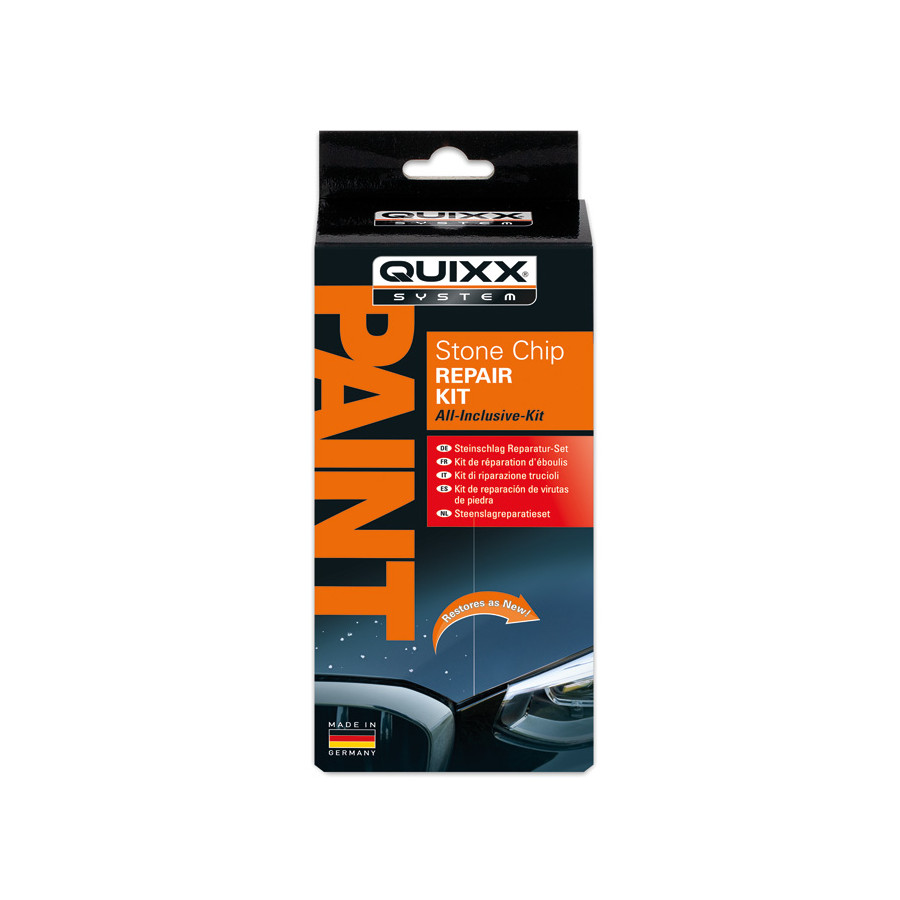 Repintar un capó completo es costoso y requiere mucho tiempo. Gracias al kit de reparación de impactos de piedra QUIXX, los desconchones y pequeños desprendimientos en la pintura frontal de su coche desaparecerán.
