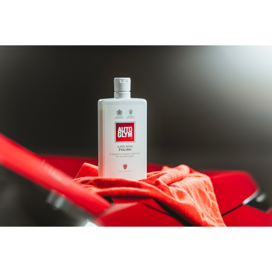 El pulimento de resina Super Resin de Autoglym es una leyenda en el mundo del cuidado automotriz. Se utiliza para eliminar pequeñas rozaduras y rayones, y restaurar el brillo de todo tipo de pintura. No solo restaura el brillo de superficies opacas, sino que también es ideal para eliminar pequeñas rozaduras y rayones en pintura nueva o vieja. Úselo cada pocos meses según sea necesario para mantener un brillo impecable. Este famoso envase se puede encontrar en talleres de todo el mundo, y el producto se ha aplicado con cariño a todo tipo de vehículos, desde hipercoches y clásicos de incalculable valor hasta coches familiares.
