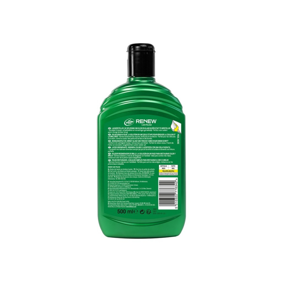 Turtle Wax Renew Polish es un pulimento todo en uno que restaura el color cuando está opaco y descolorido. Perfecto para autos antiguos con marcas de remolino y rayones, este pulimento los elimina fácilmente con sus abrasivos ultrafinos. Los microabrasivos se vuelven más finos a medida que se pule, dando como resultado un acabado impecable.