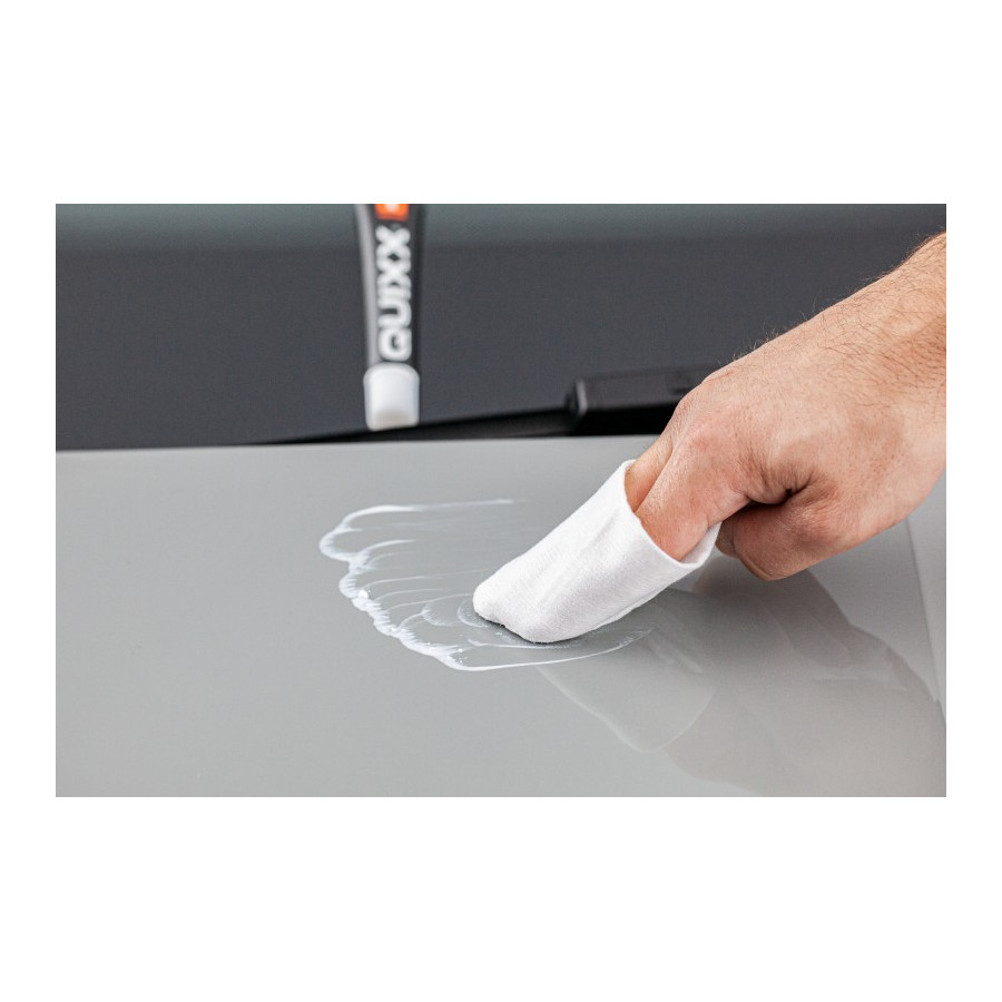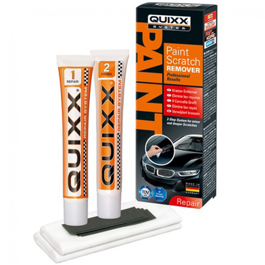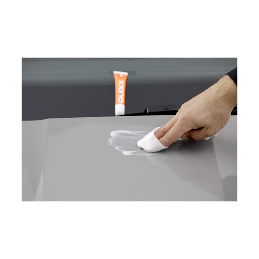 El sistema de reparación QUIXX elimina de forma rápida y fiable arañazos, pequeñas rozaduras y residuos de color en todo tipo de acabados de pintura (incluidos los metálicos). Dos pulimentos especializados diferentes (gracias a un innovador sistema de dos pasos) pueden eliminar tanto arañazos leves como profundos. Simplemente aplique la pasta y pula. La eficacia superior de QUIXX deja su pintura como nueva.