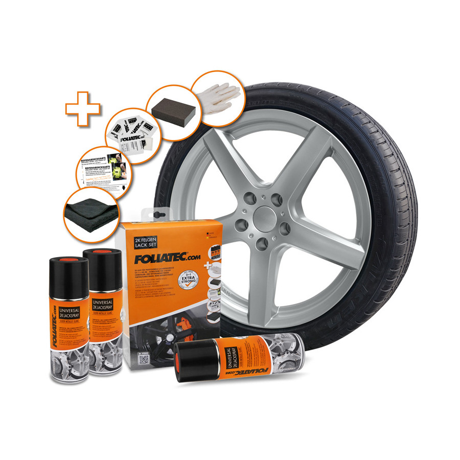 Juego de pintura para ruedas Foliatec 2C Plata Metalizado 3 x 400 ml
