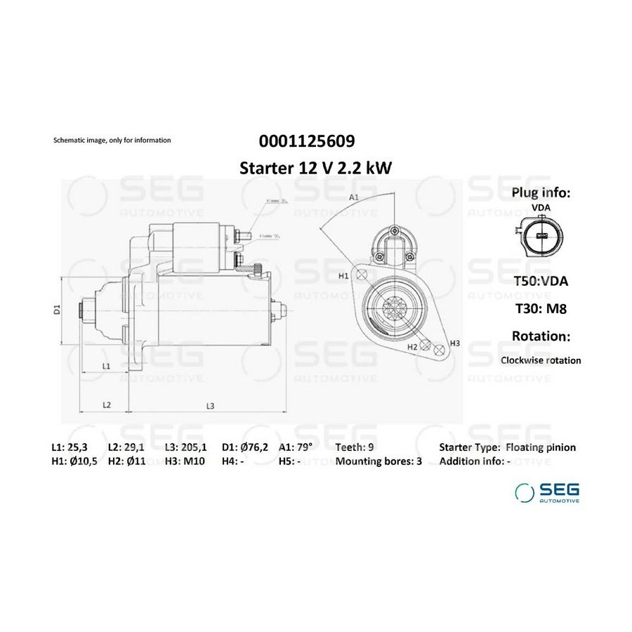 | SEG AUTOMOTIVE | 0001 125 609 | (este producto) |