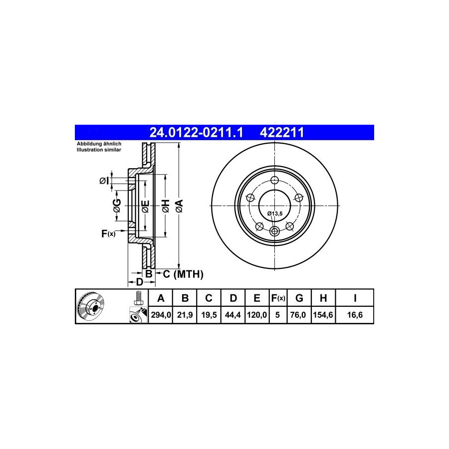 • Disco de freno 24.0122-0211.1 ATE, Miniatura 2