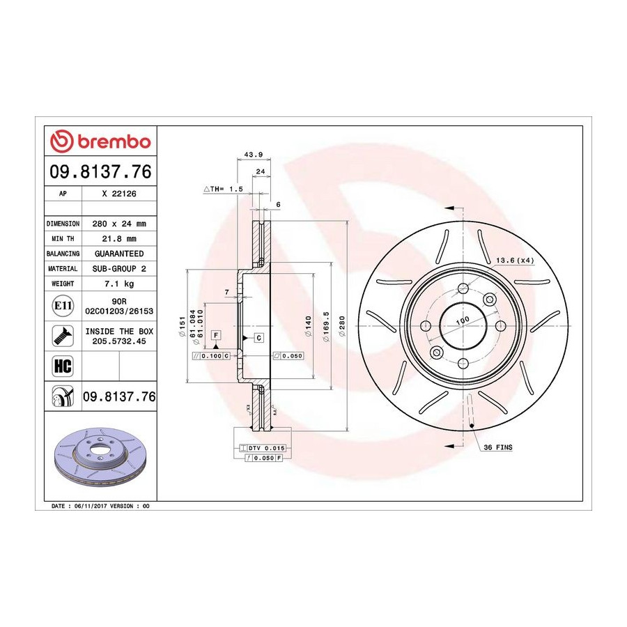 Disco de freno delantero 09.8137.76 Brembo