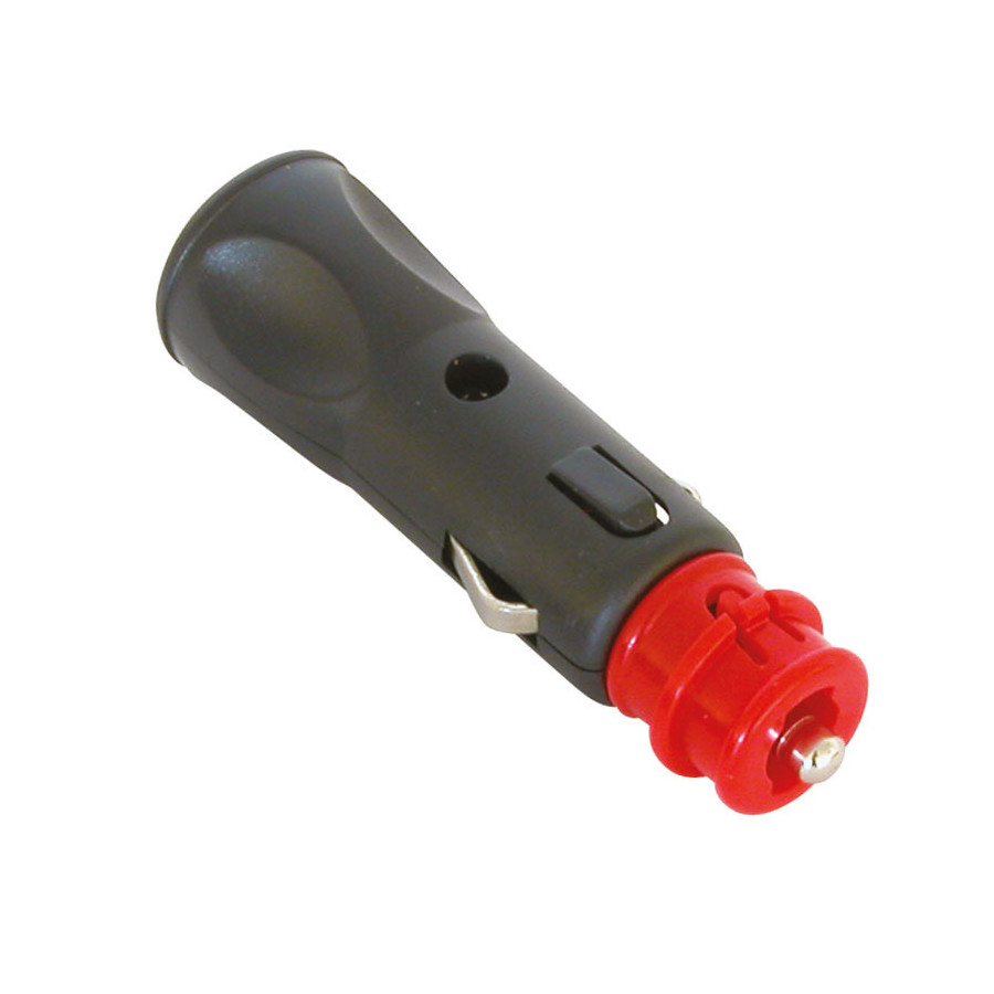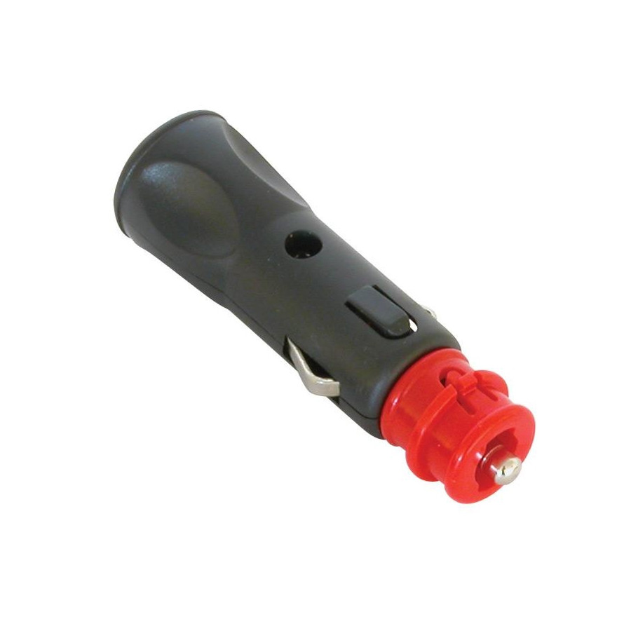 Enchufe de encendedor Carpoint de 6-24 voltios, compatible con encendedores estándar y conexiones de 12 mm ISO 4165 BMW/Bosch/Norm o Powerlet. Conexión por tornillo. Con alivio de tensión y una capacidad de carga máxima de 8 amperios, incluye un fusible de vidrio integrado y reemplazable.