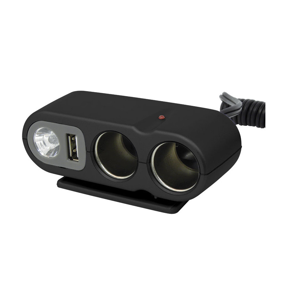 Con la regleta Carpoint de 2 vías, puedes convertir tu toma de mechero actual en una de tres vías. Cuenta con dos puertos de carga de 12 voltios con indicadores LED y un puerto USB de 5 voltios. También cuenta con iluminación LED blanca brillante y un interruptor de encendido/apagado. Es compatible con tomas de mechero estándar de 21 mm. El cable mide 90 centímetros de largo e incluye un soporte adhesivo extraíble. Tiene una capacidad máxima de 5 amperios y un fusible de vidrio integrado y reemplazable.