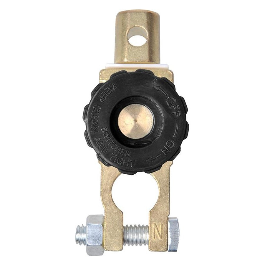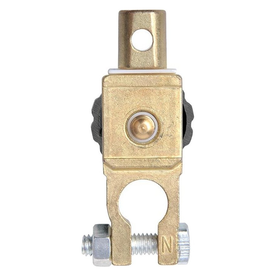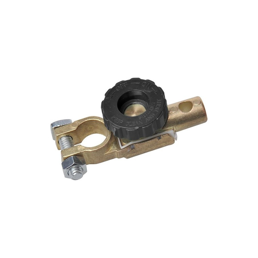 Aplicación universal para 6 V, 12 V y 24 V para desconectar la batería sin herramientas. Previene cualquier tipo de fuga y es también muy eficaz como sistema antirrobo. Ideal para vehículos que necesitan estacionarse temporalmente. Coloque este interruptor principal en el terminal negativo de la batería del coche y luego conecte el cable de la batería al disyuntor. Simplemente afloje la perilla y el circuito se interrumpirá. Cuando quiera conducir, simplemente apriete la perilla. El circuito se reanudará y podrá arrancar el vehículo de nuevo.
