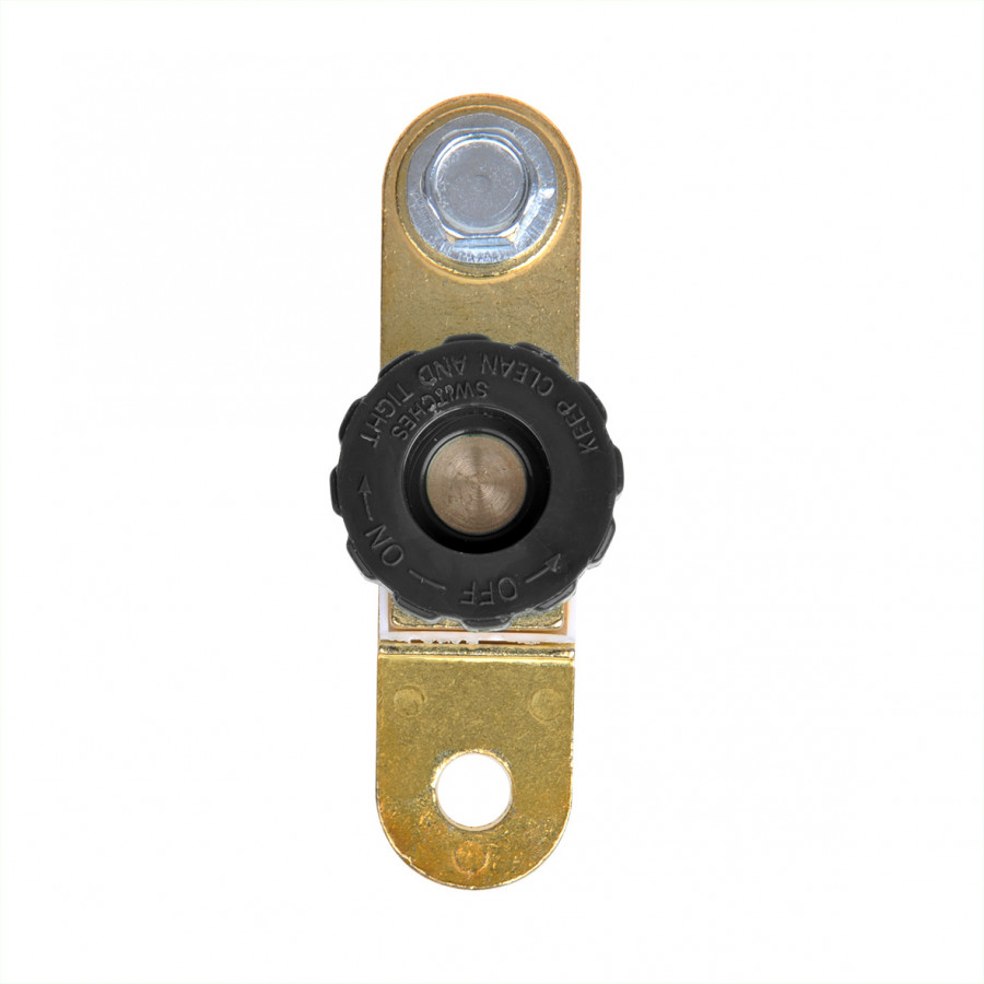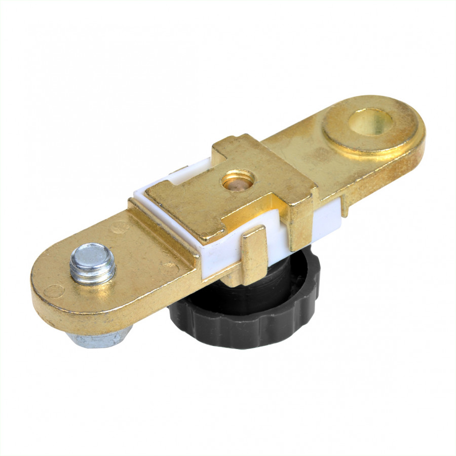 Aplicación universal para 6 V, 12 V y 24 V para desconectar la batería sin herramientas. Previene cualquier tipo de fuga y es también muy eficaz como sistema antirrobo. Ideal para vehículos que necesitan estacionarse temporalmente. Coloque este interruptor principal en el terminal negativo de la batería del coche y luego conecte el cable de la batería al disyuntor. Simplemente afloje la perilla y el circuito se interrumpirá. Cuando quiera conducir, simplemente apriete la perilla. El circuito se reanudará y podrá arrancar el vehículo de nuevo.