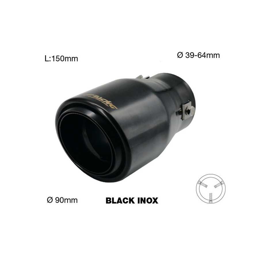 Embellecedor de escape Simoni Racing redondo/inclinado de acero inoxidable negro - Ø90xL150mm - Montaje 39->64mm