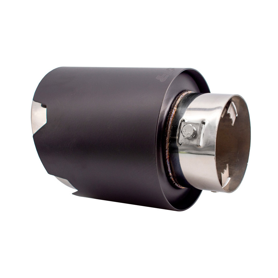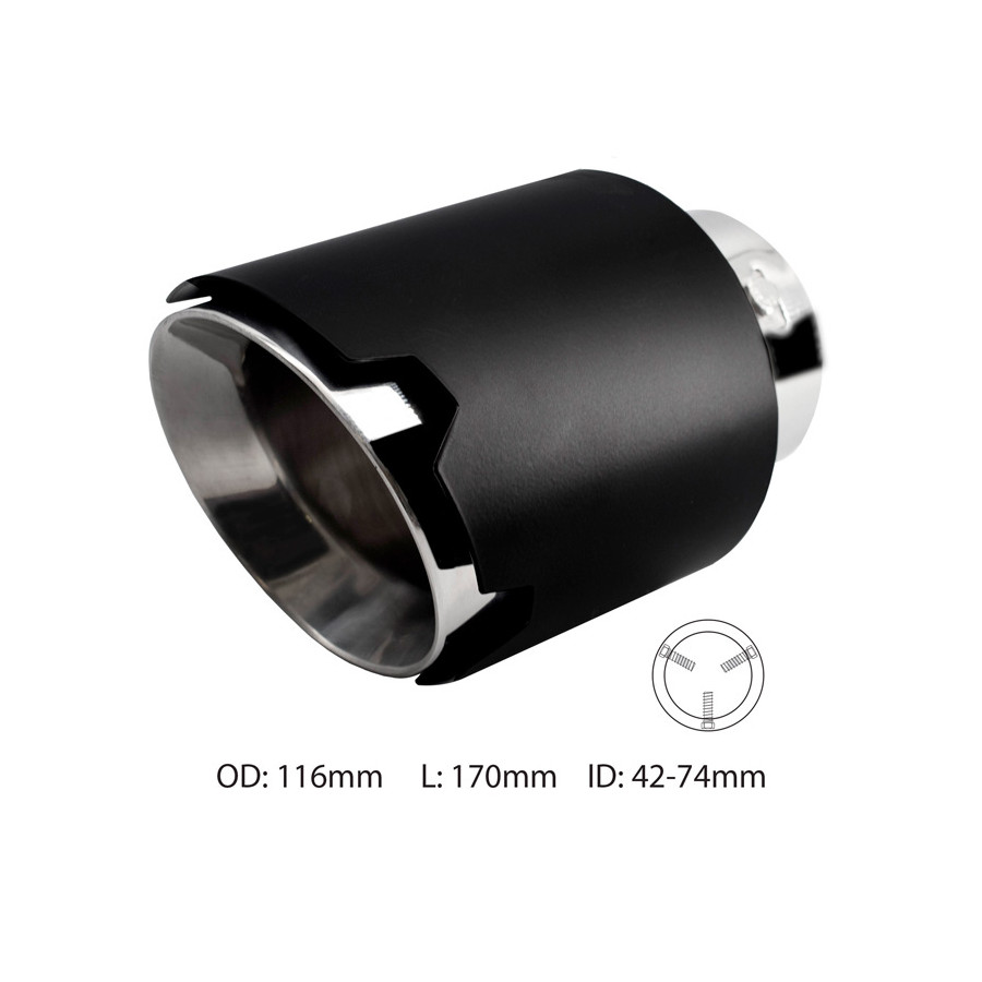Embellecedor de escape Simoni Racing redondo/inclinado negro mate + acero inoxidable - Ø116xL170mm - Montaje 42-74mm