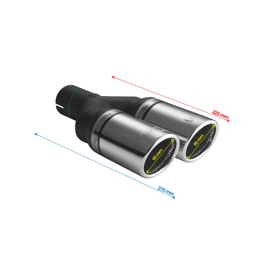 Embellecedor de escape Ulter Sport - Doble redondo 90 mm RS - Longitud 225 mm - Montaje ->50 mm - Acero inoxidable