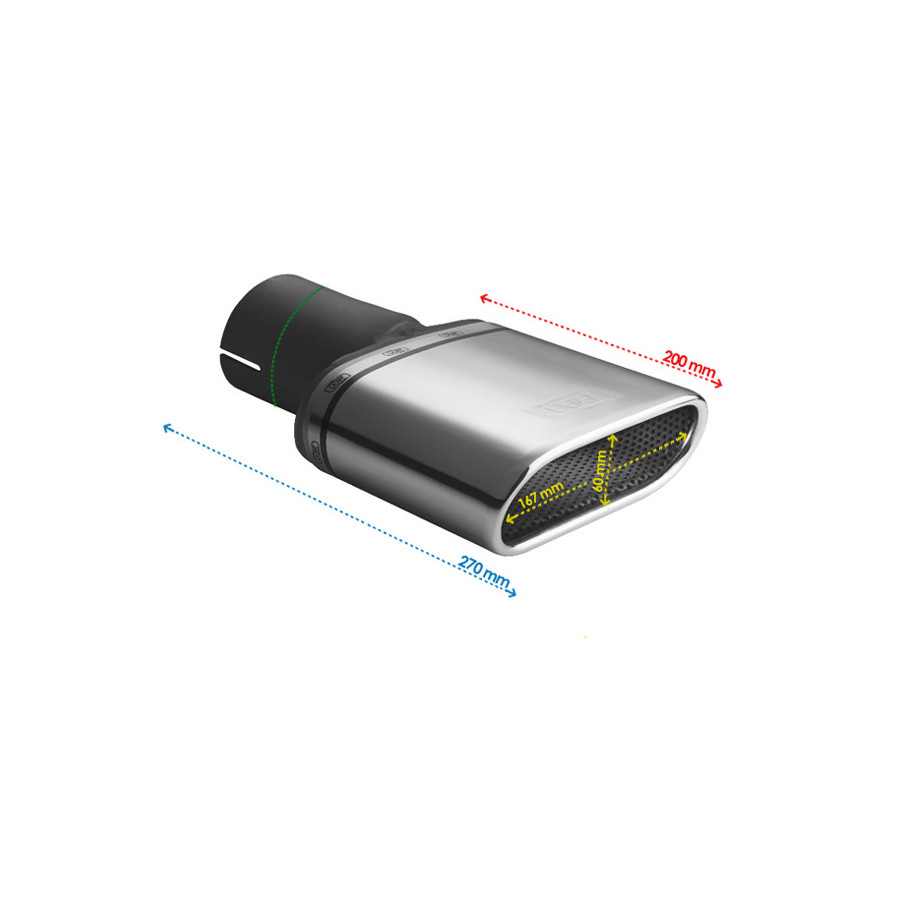 Embellecedor de escape Ulter Sport - Ovalado 167x60mm - Longitud 200mm - Montaje ->50mm - Acero inoxidable
