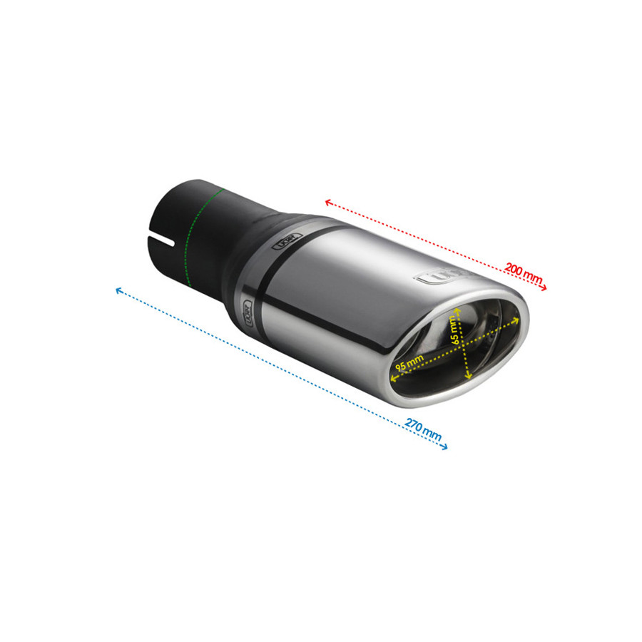 Embellecedor de escape Ulter Sport - Ovalado 95x65 mm en ángulo - Longitud 200 mm - Montaje ->50 mm - Acero inoxidable