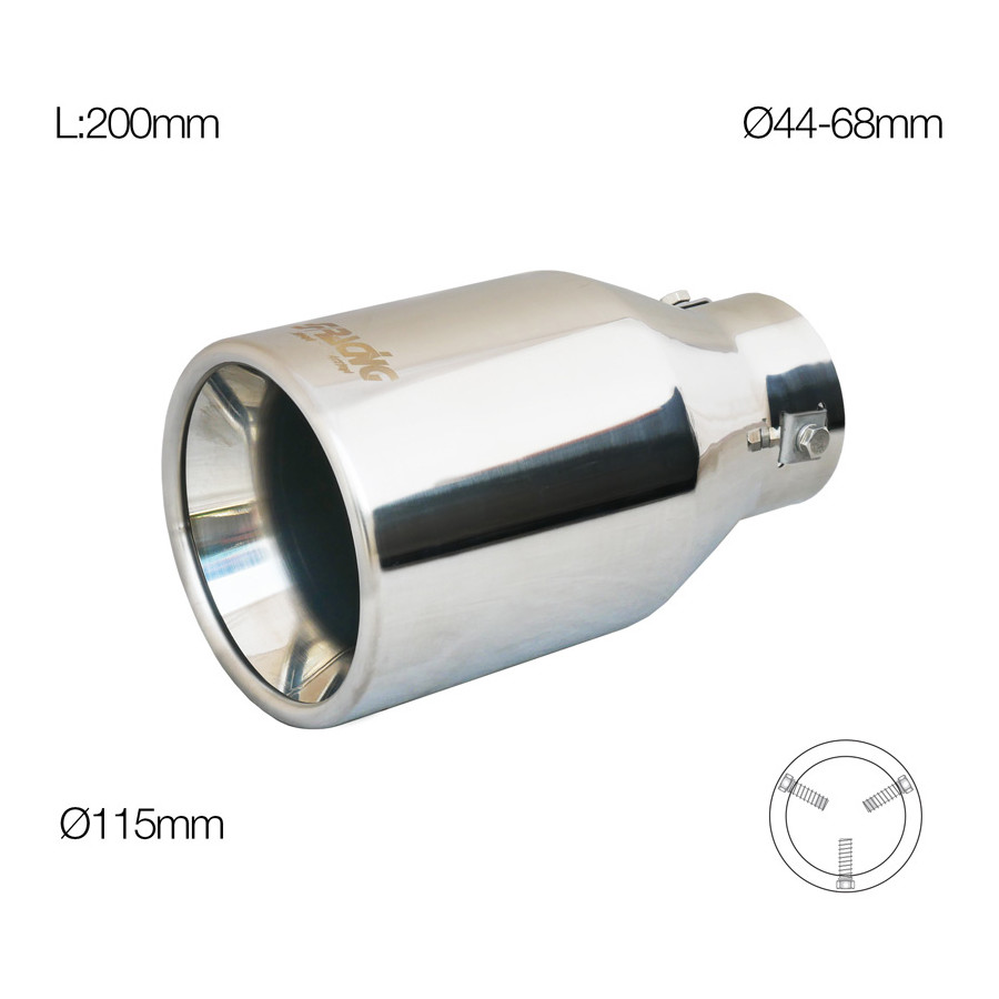 Punta de escape Simoni Racing redonda de acero inoxidable 115xL200mm - Diámetro de conexión 44-68mm