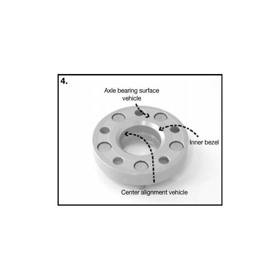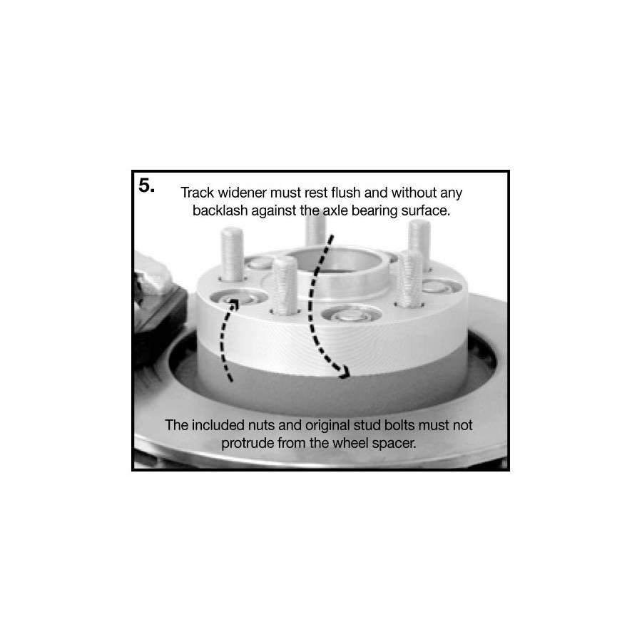 El espaciador de vía debe fijarse al buje axial con las tuercas de montaje suministradas. A continuación, las ruedas deben montarse con las tuercas originales incluidas. Generalmente, no es posible usar ruedas de acero con sistemas DRM.