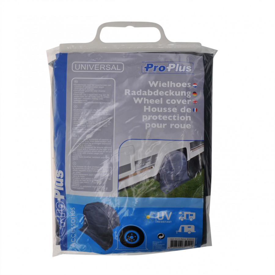 Funda para neumáticos para proteger las ruedas de caravanas o autocaravanas de la sequedad y los daños. Universal para diversos vehículos. Incluye dos ojales con anilla en la parte inferior para fijar la funda con una clavija metálica (no incluida).