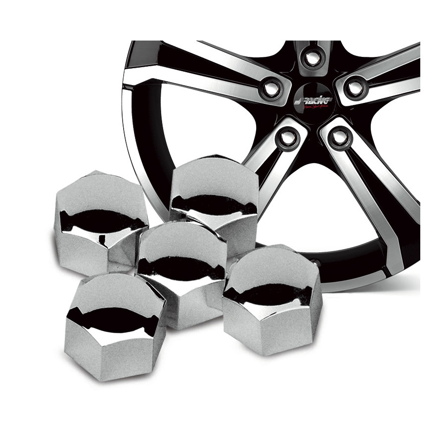 Tapas para tuercas de rueda Simoni Racing - 19 mm - Cromadas - Juego de 20 piezasJuego de 20 tapacubos universales de plástico para tuercas de rueda. Incluye un adaptador para retirarlos.