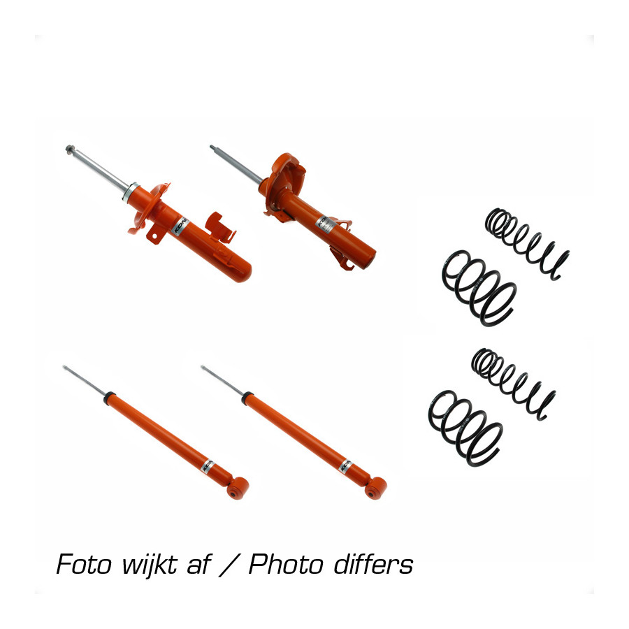 El kit KONI STR.T consta de amortiguadores KONI STR.T y muelles de bajada de altura hechos a medida por el fabricante alemán H&R. Ambas compañías cuentan con años de experiencia en las categorías más altas del automovilismo, como la Fórmula 1 y el DTM. Las ventajas para el cliente son evidentes. Esta experiencia, combinada con la tecnología más avanzada, se integra directamente en los amortiguadores y muelles. Los amortiguadores KONI STR.T ofrecen una dirección y un manejo perfectos, además de una fuerza centrífuga impresionante. Gracias a su rapidísima respuesta, el piloto puede confiar plenamente en su kit STR.T, incluso en situaciones peligrosas y exigentes. El resultado de esta colaboración entre H&R y los amortiguadores KONI STR.T es que el preparador del kit STR.T dispone de un kit perfectamente equilibrado para su coche. Esto minimiza los movimientos indeseados de la carrocería. Según el modelo, está disponible una bajada fija de hasta 40 mm.